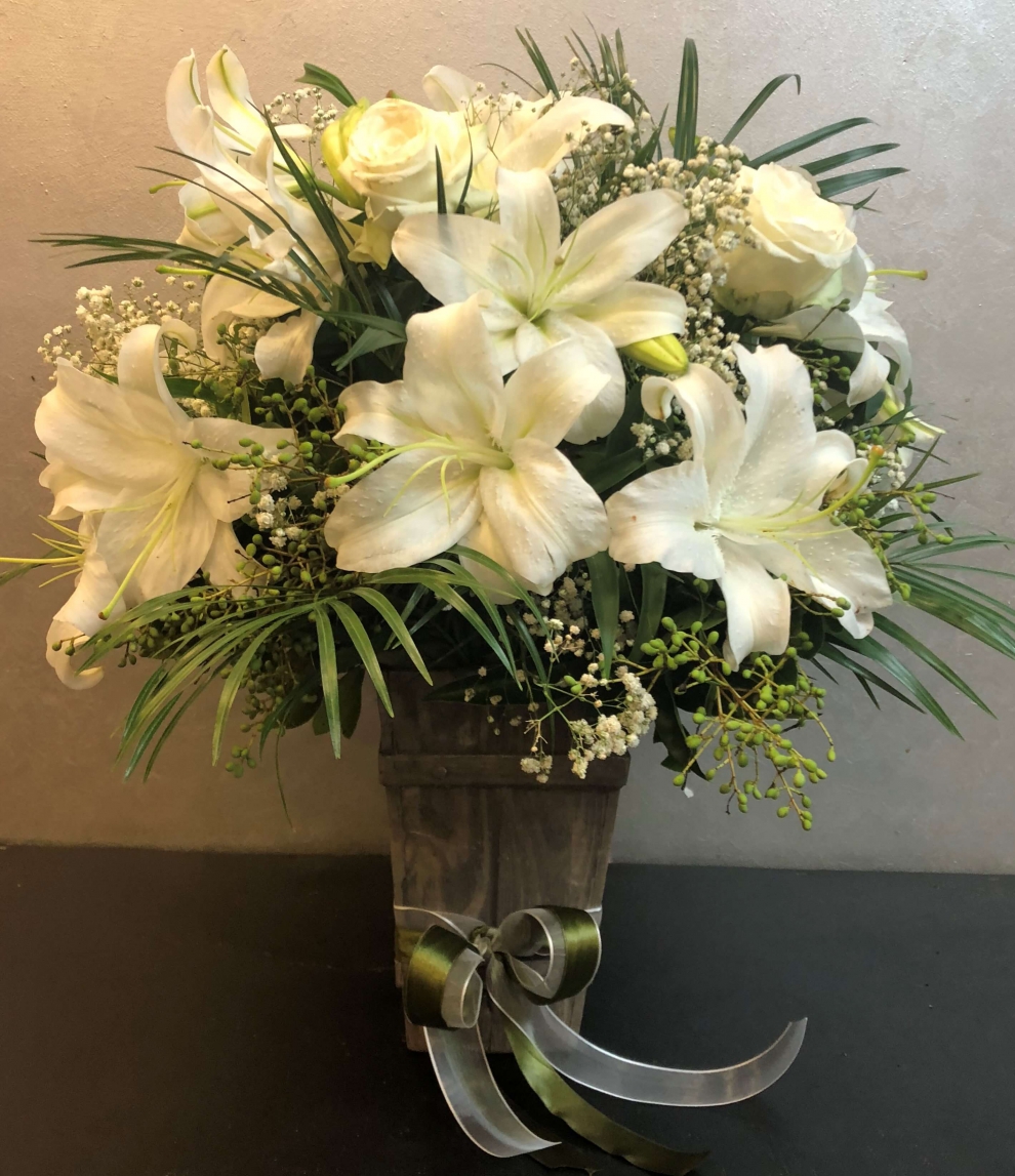 Beyaz Lilyumlar Tasarım 'da kullanılan çiçek ve aksesuarlar stok durumuna göre farklılık gösterilebilir.