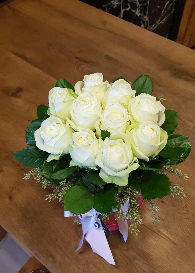 Zebra Beyaz Gül Kutu Arajman Tasarım 'da kullanılan çiçek ve aksesuarlar stok durumuna göre farklılık gösterilebilir.